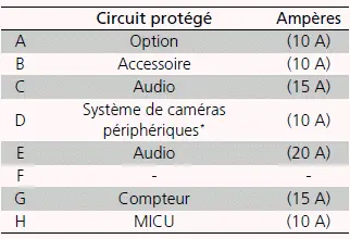 Utiliser les tableaux pour situer le fusible en question et confirmer l'intensité nominale sur l'étiquette du fusible.